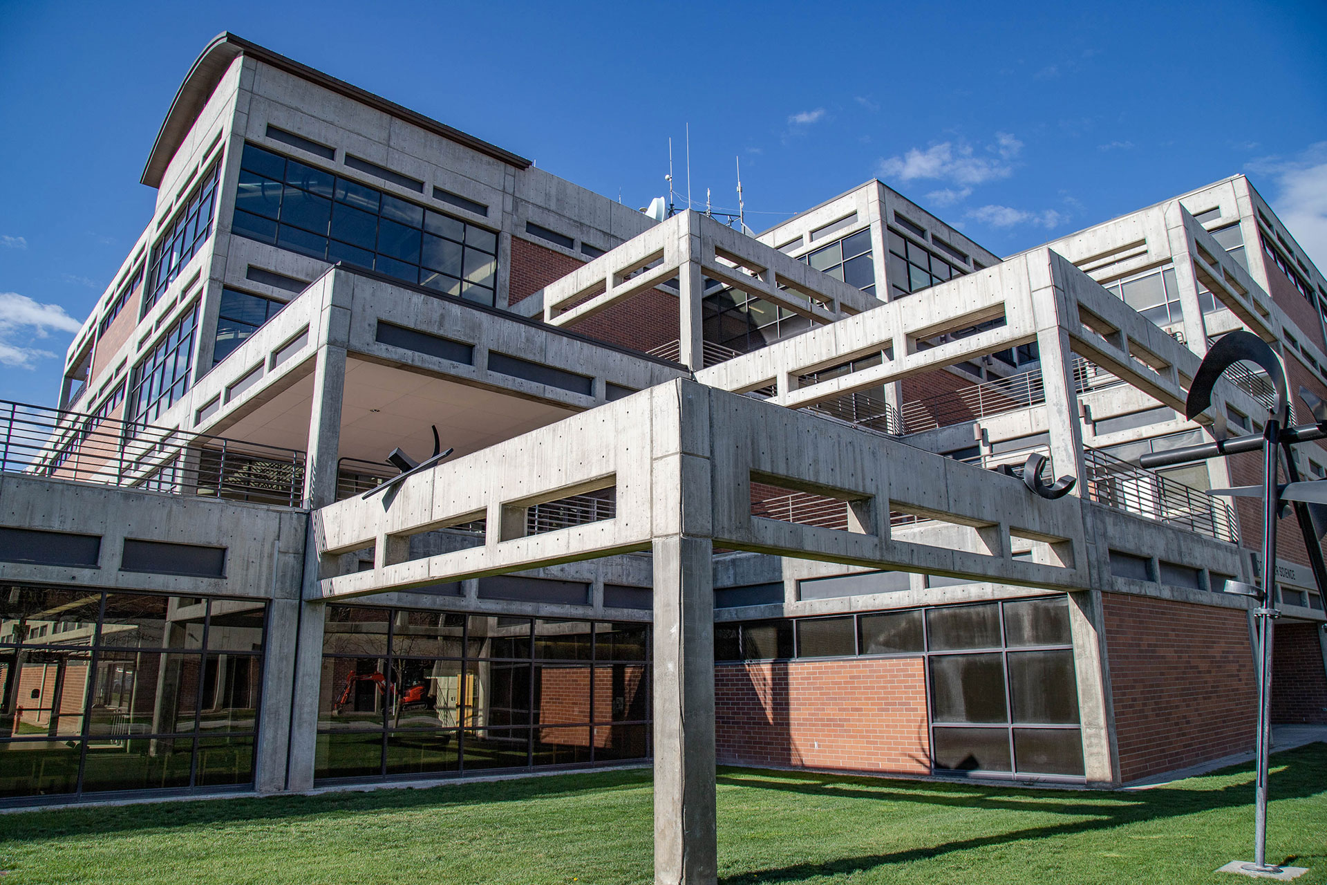 This project features brutalist design. The exterior of the 4-story building is a poured in place concrete structure. This building is also connected to other existing structures via two covered walkways within the building. The building also includes a cantilevered staircase in the commons area with an 80 ft. ceiling. The construction of this massive building took about 28 months and was completed in February of 2002.